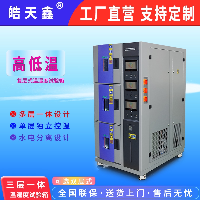 復層式溫濕度試驗箱節能用于檢測材料在各種環境下性能的設備及試驗各種材料耐熱、耐寒、耐干、耐濕性能。適合電子、電器、通訊、儀表、車輛、塑膠制品、金屬、食品、化學、建材、醫療、航天等制品檢測質量之用。